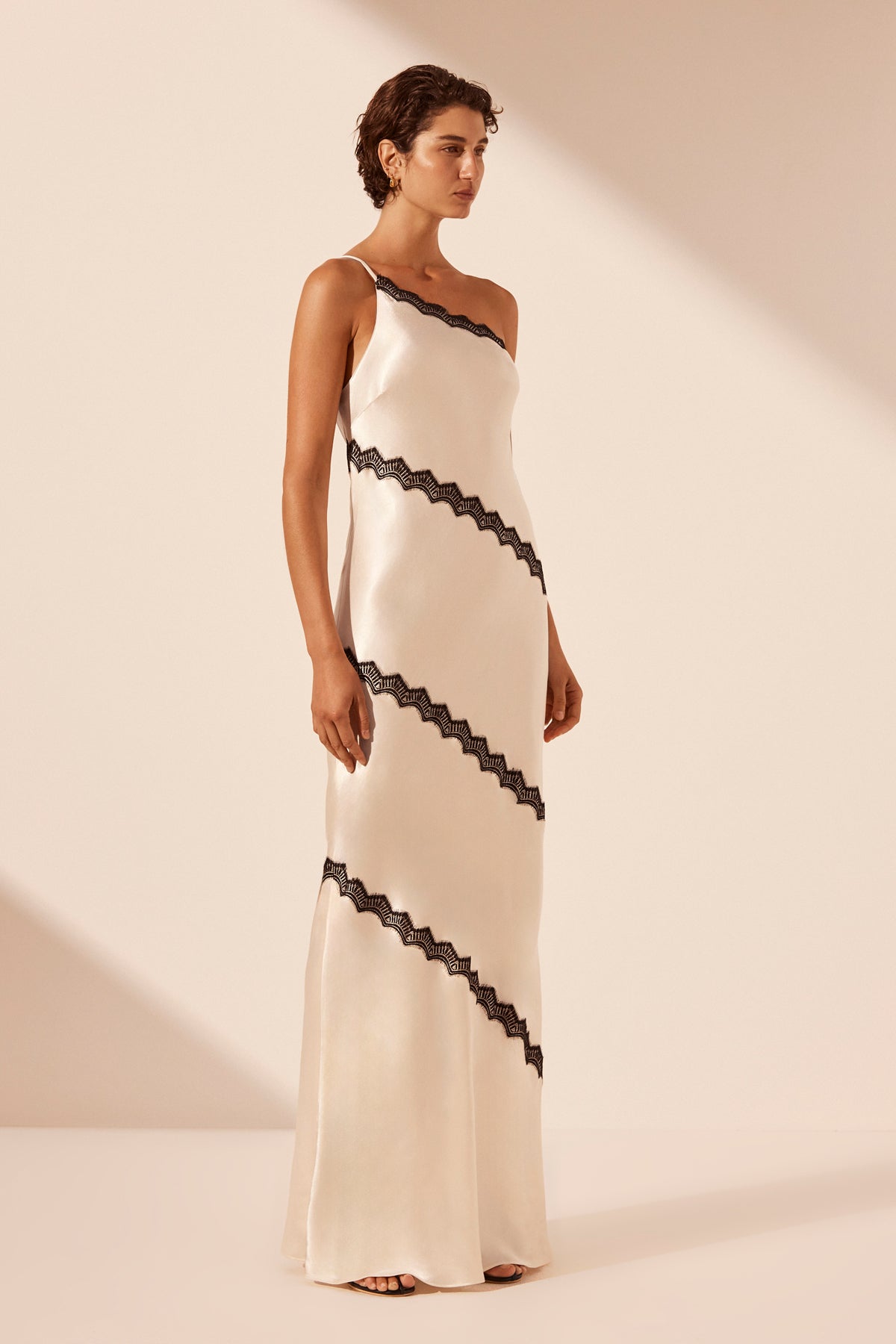 CAMILLE LACE ASYMMETRICAL MAXI DRESS - CREAM/BLACK