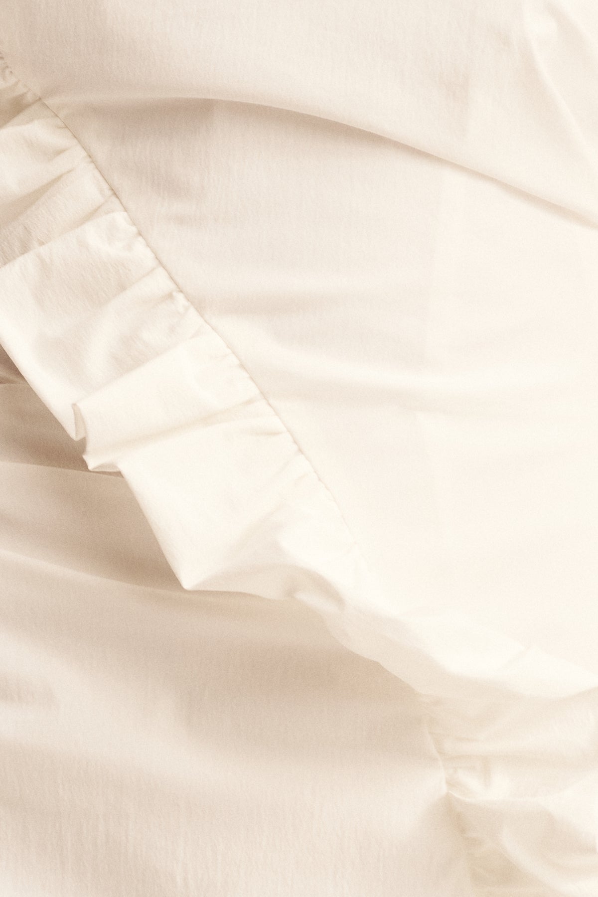 Strapless mini dress with ruffle detail in white in a premium stretch cotton blend.