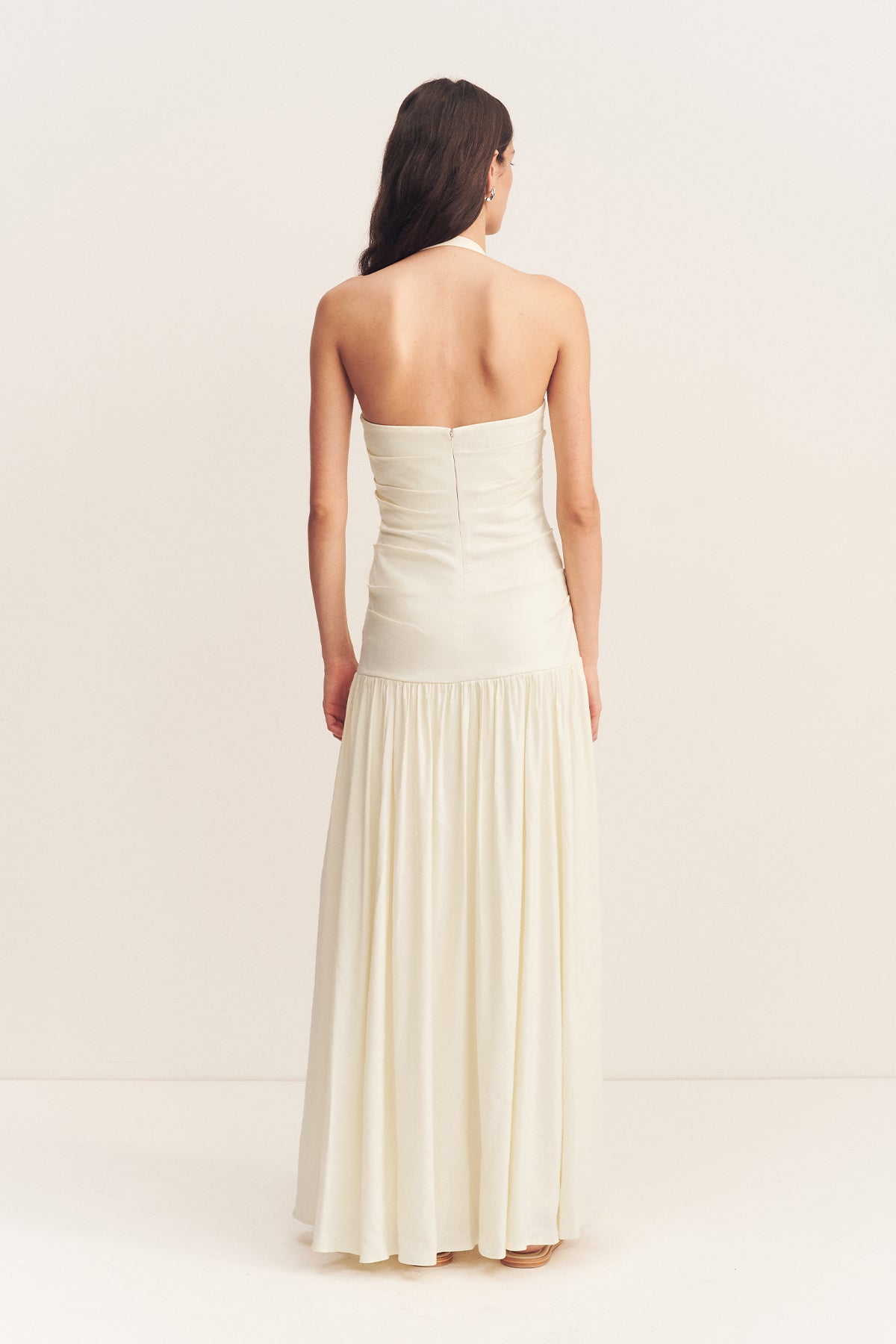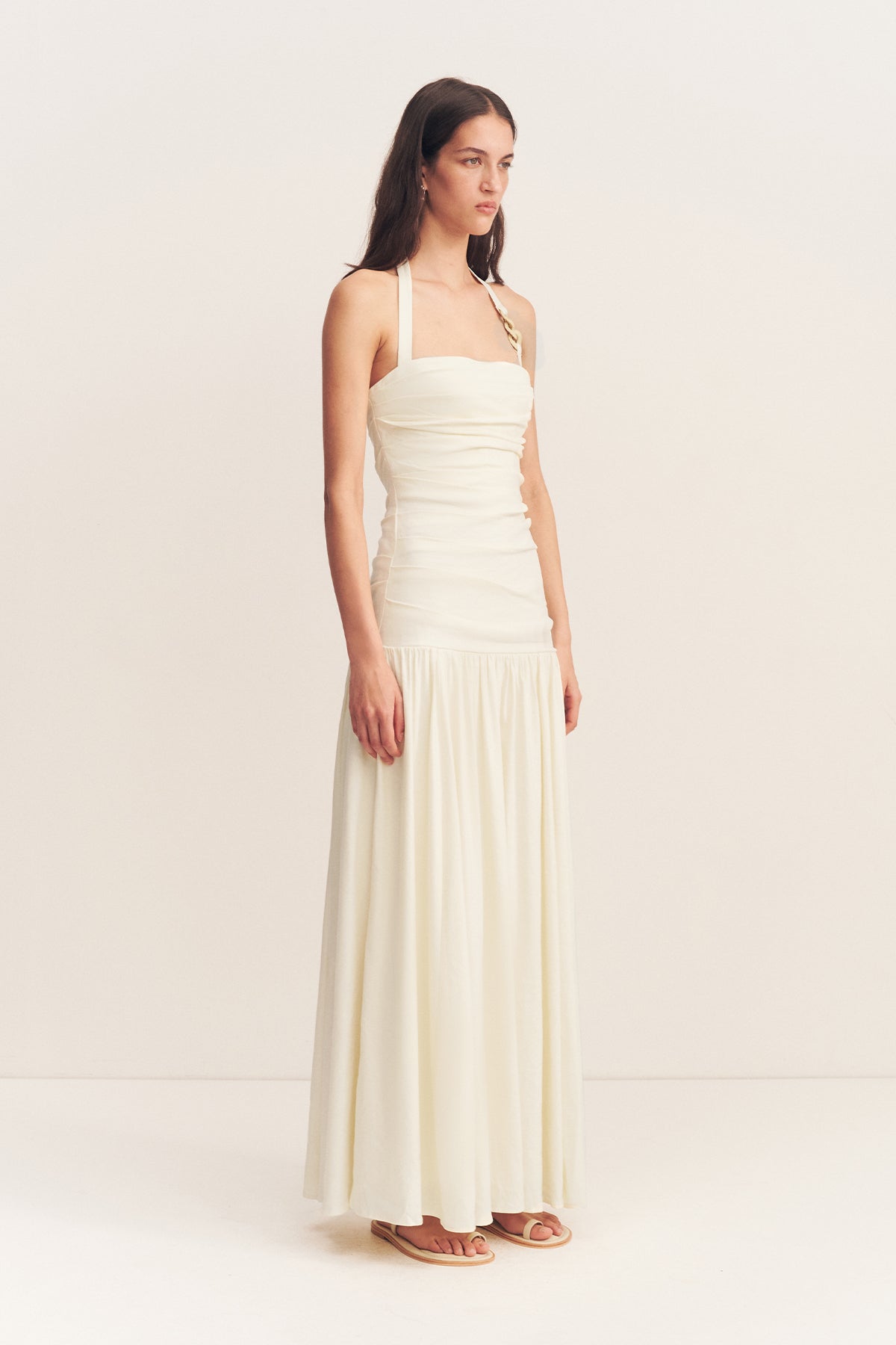 HADLEY DRAPED HALTER NECK MAXI DRESS - CHALK