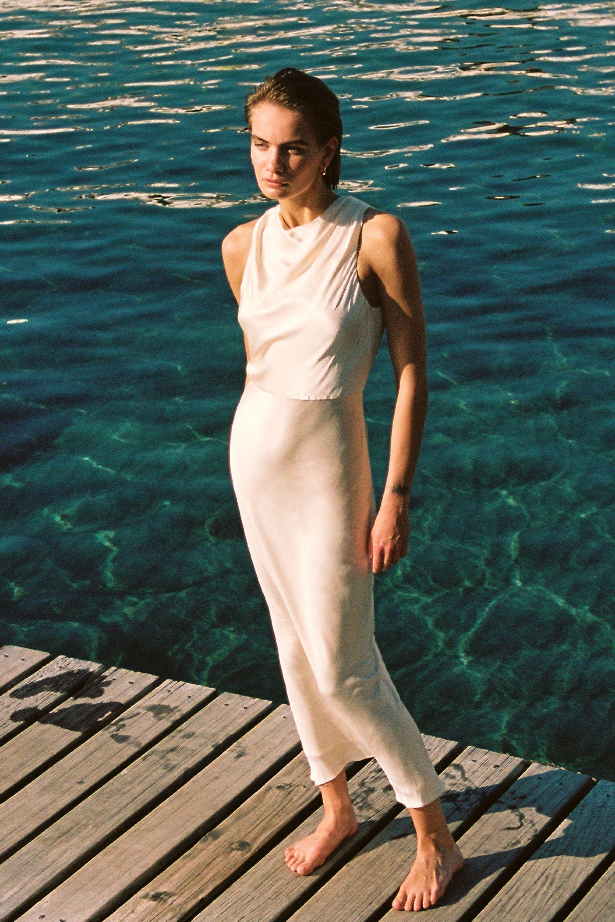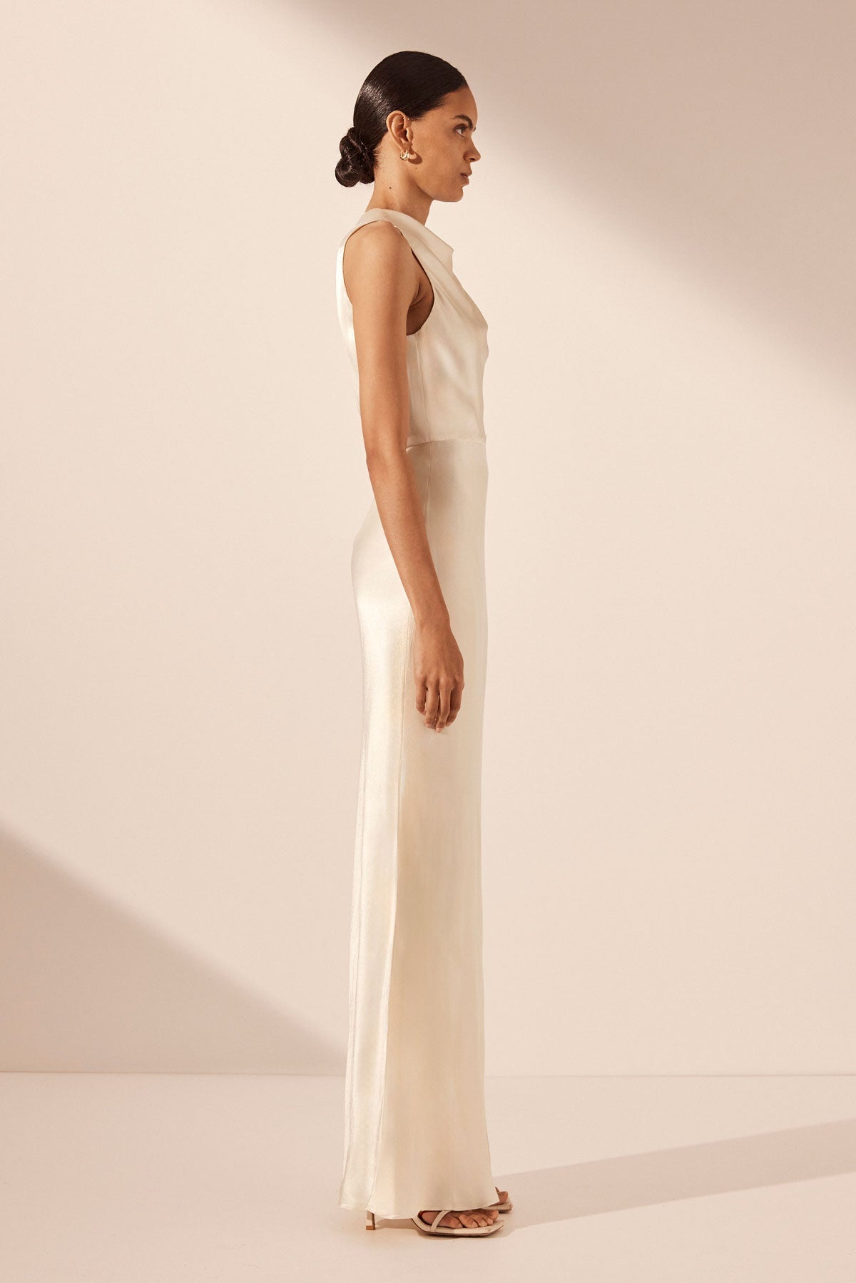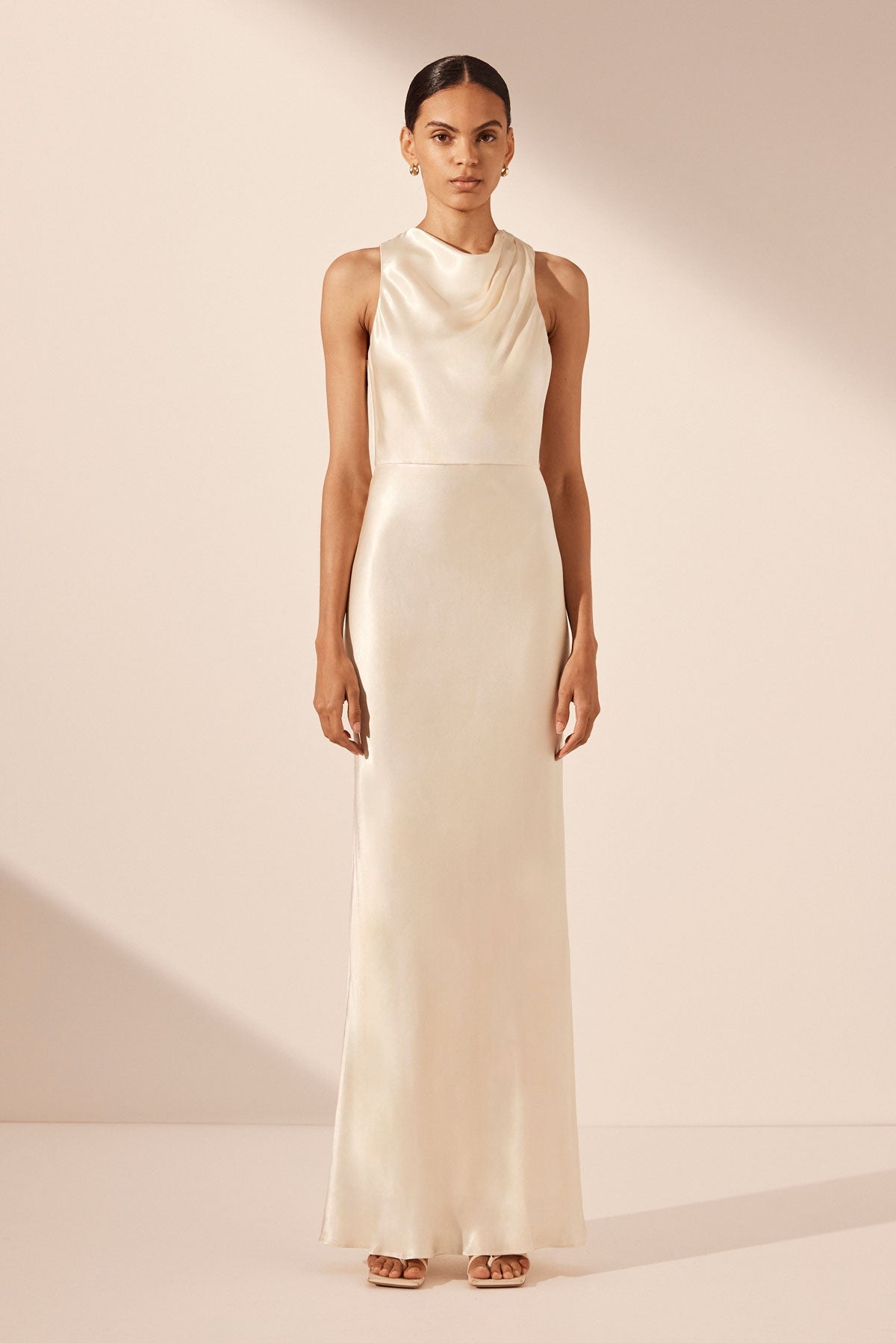 LA LUNE HIGH NECK MAXI DRESS - CREAM