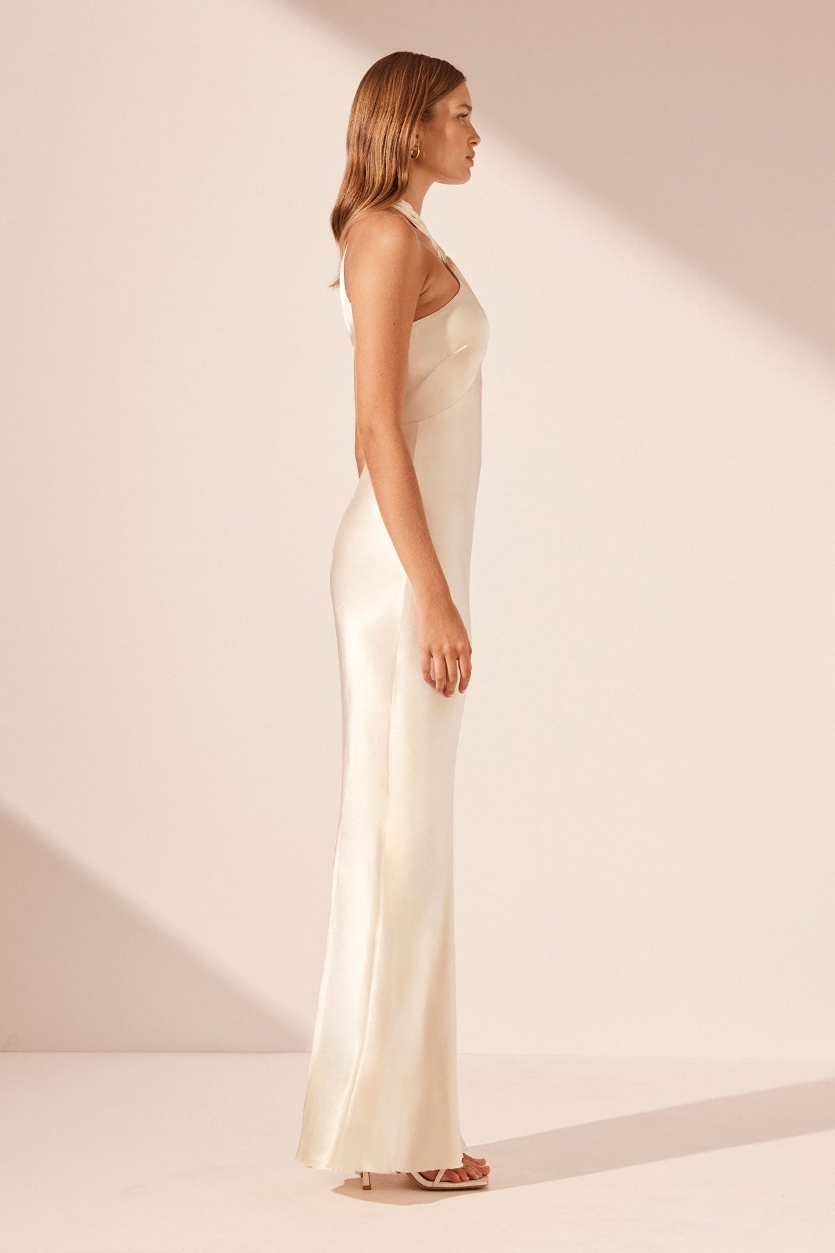LA LUNE HIGH NECK TWIST MAXI DRESS - CREAM