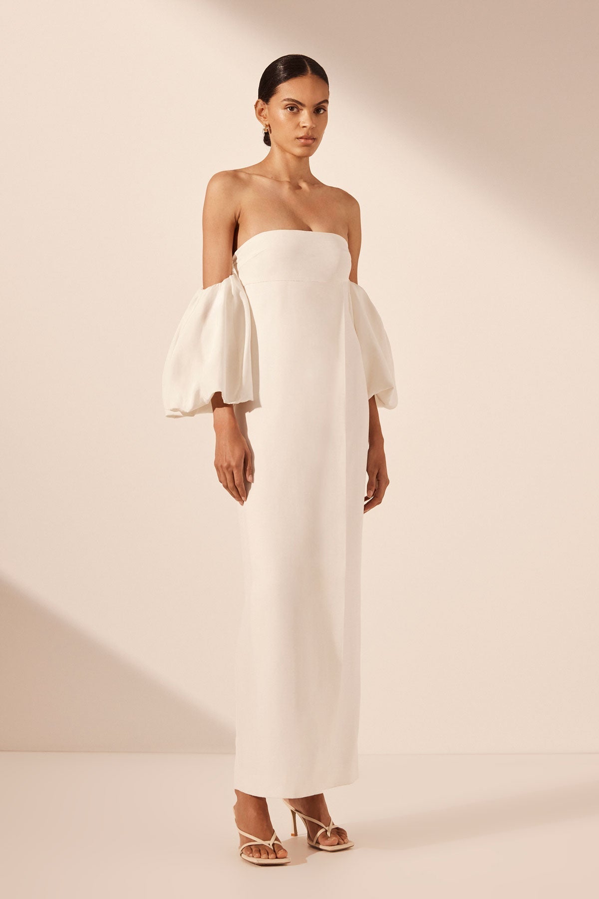 LA LUNE OTTO PUFF SLEEVE COLUMN MAXI DRESS - IVORY