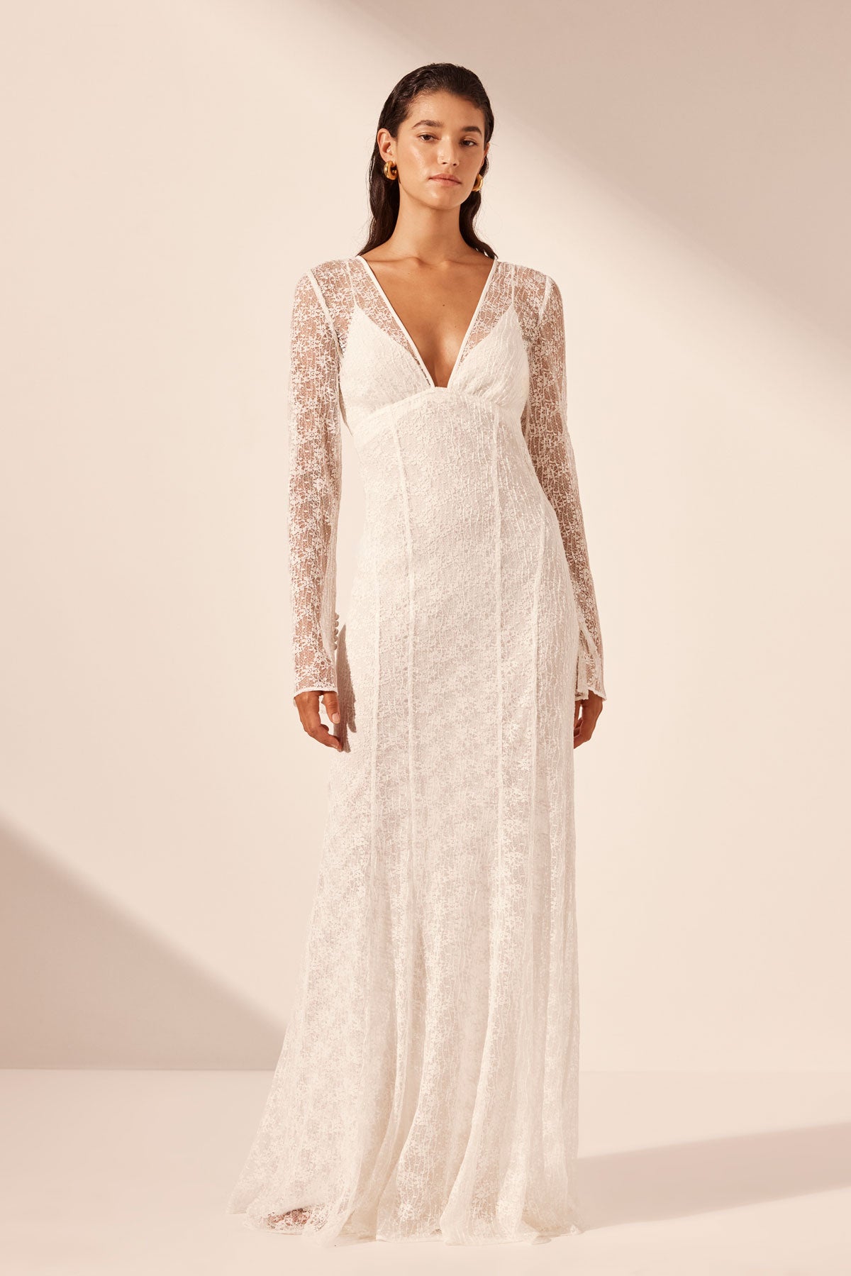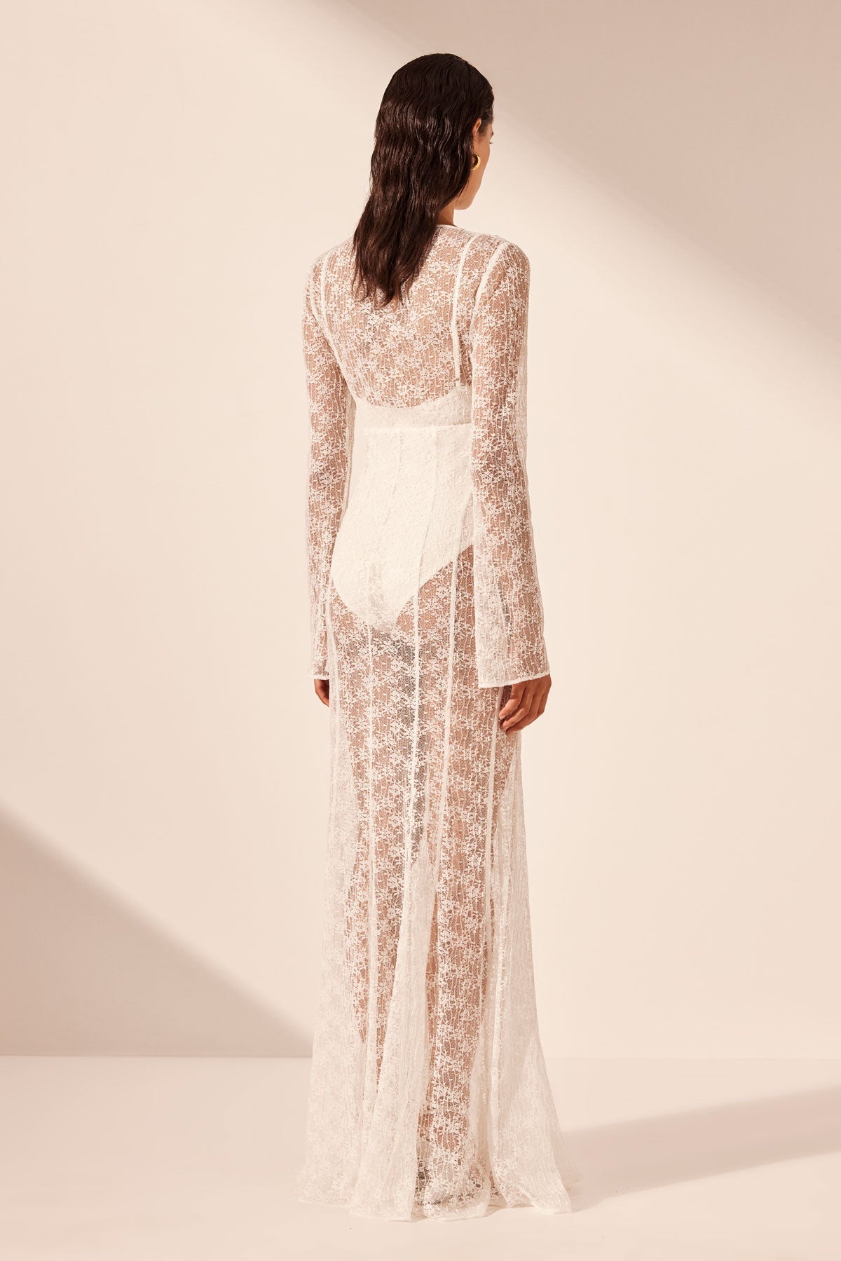 LA LUNE SOL LACE PLUNGED PANELLED MAXI DRESS - IVORY