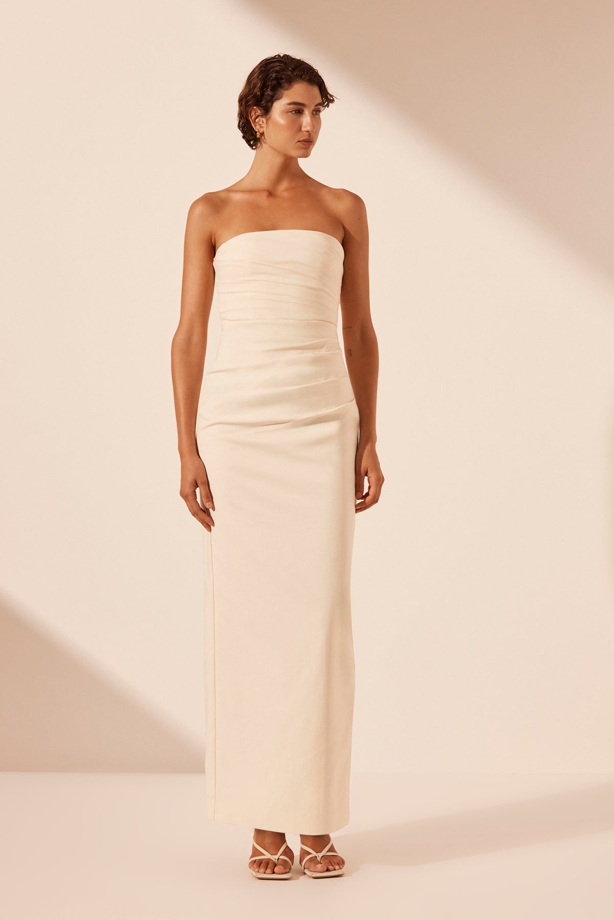 LANI STRAPLESS DRAPED MAXI DRESS - RICE