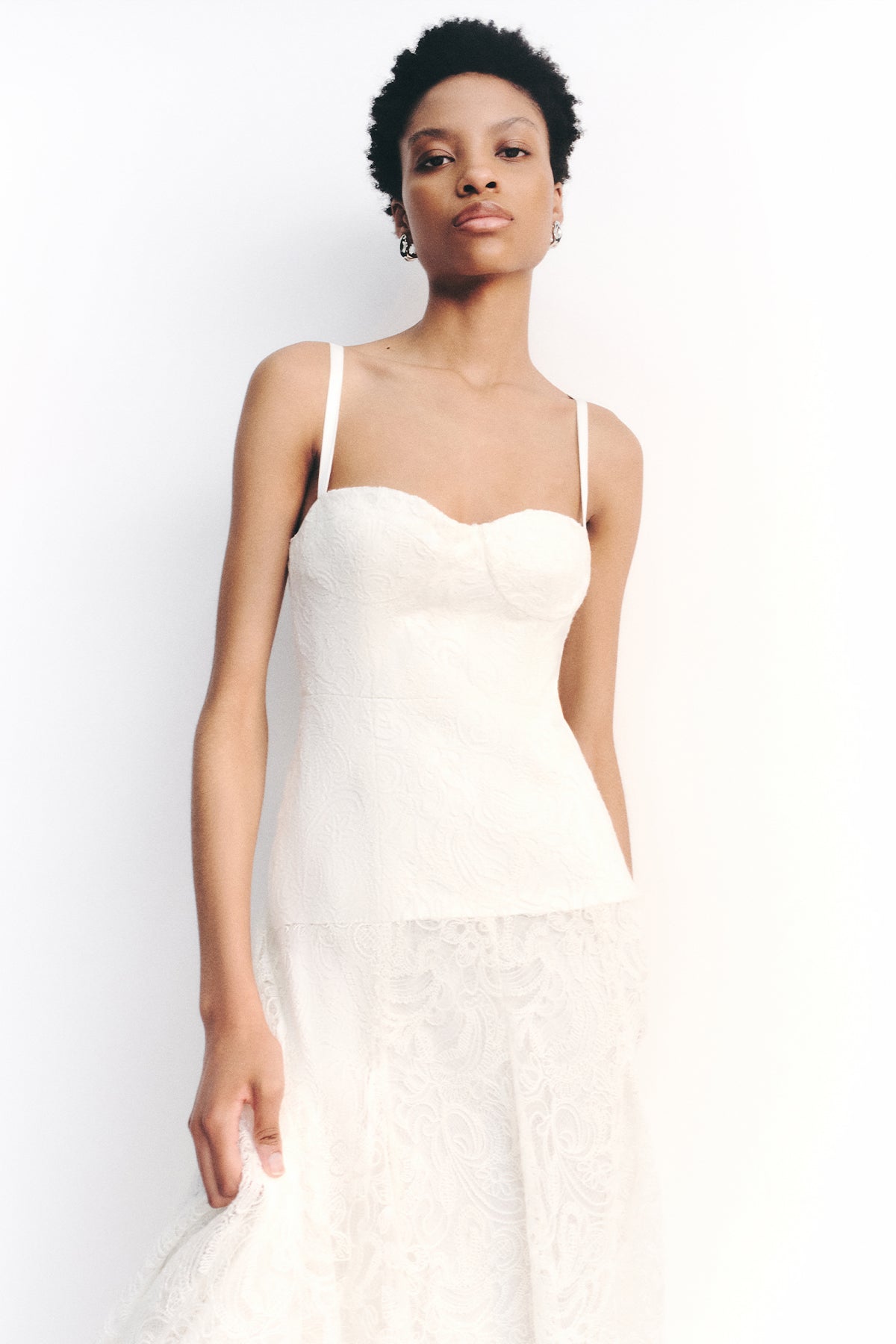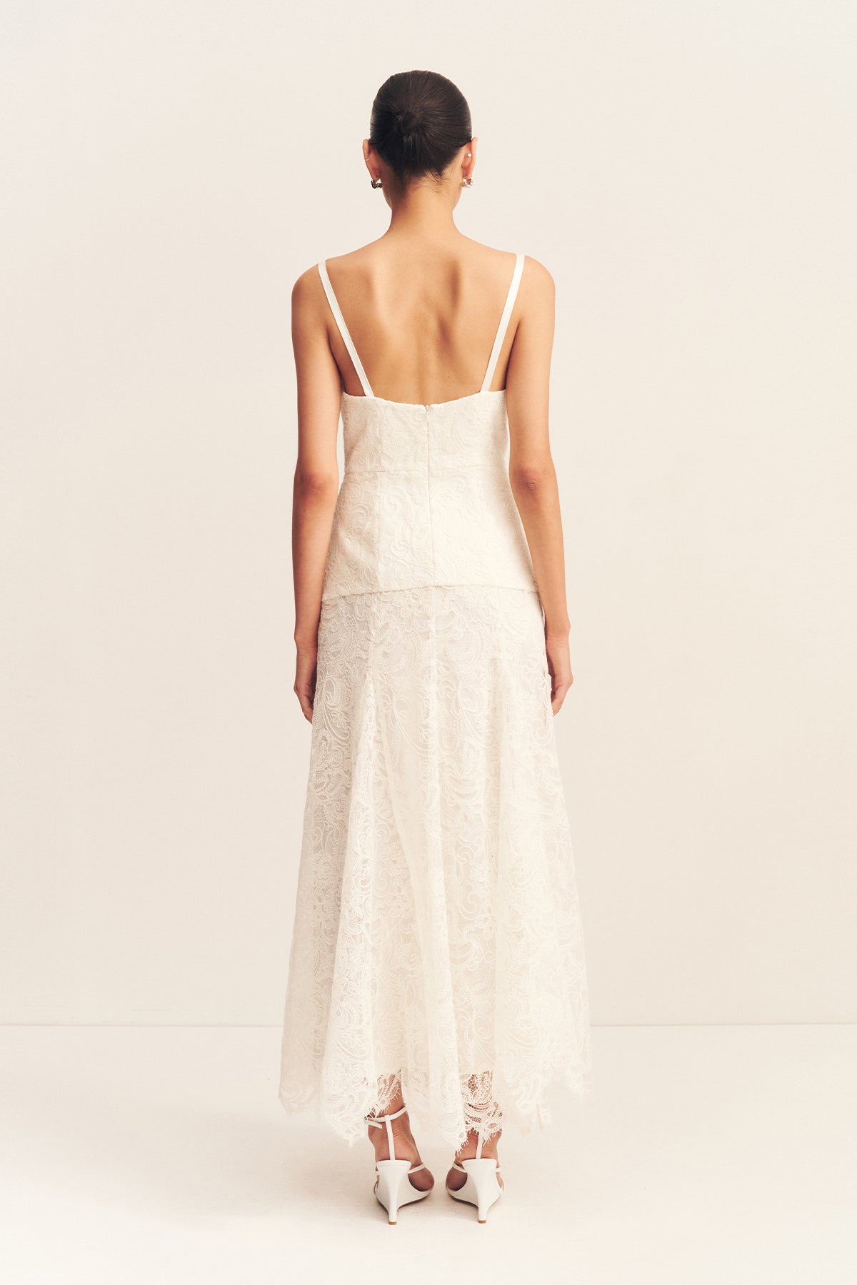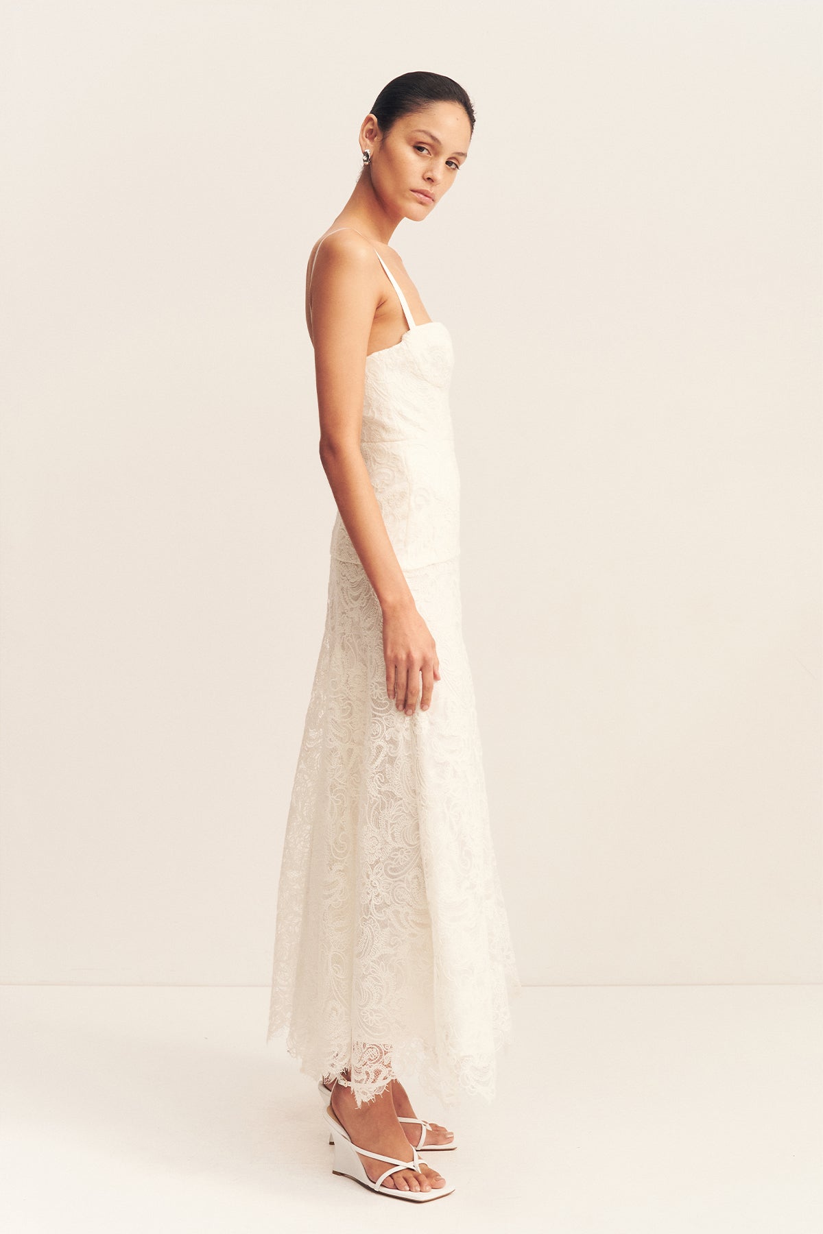 LUMINOUS LACE PANELLED MAXI DRESS - IVORY