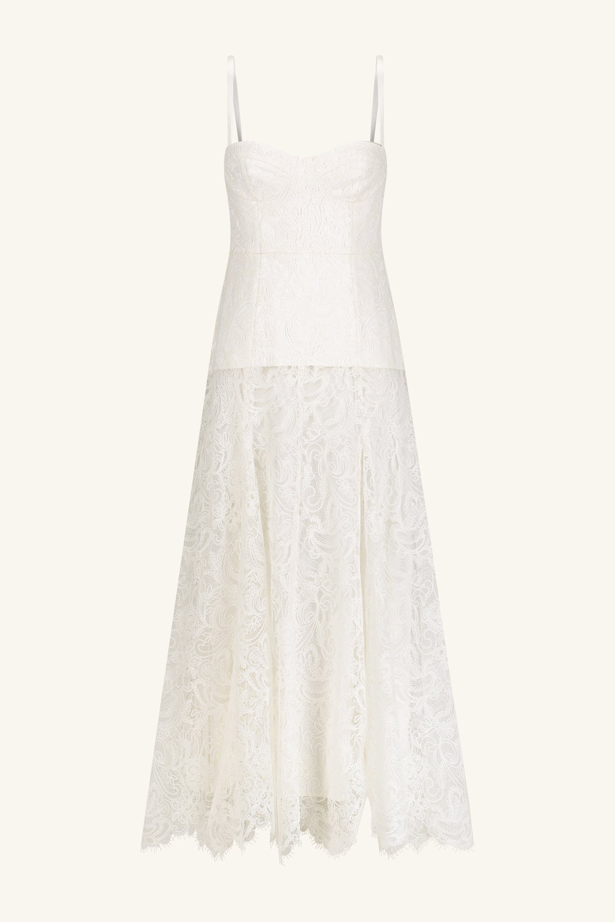 Panelled maxi dress in ivory in a textured embroidered lace.
