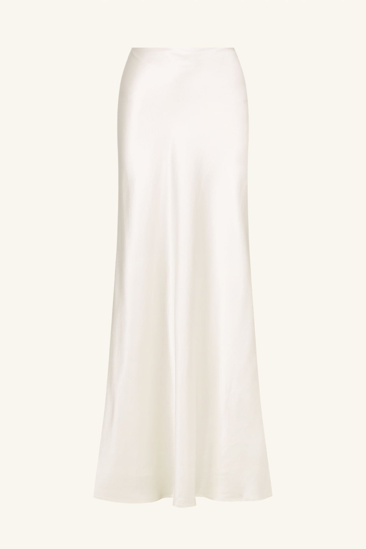 Bias cut maxi skirt in ivory in a luxurious acetate satin.