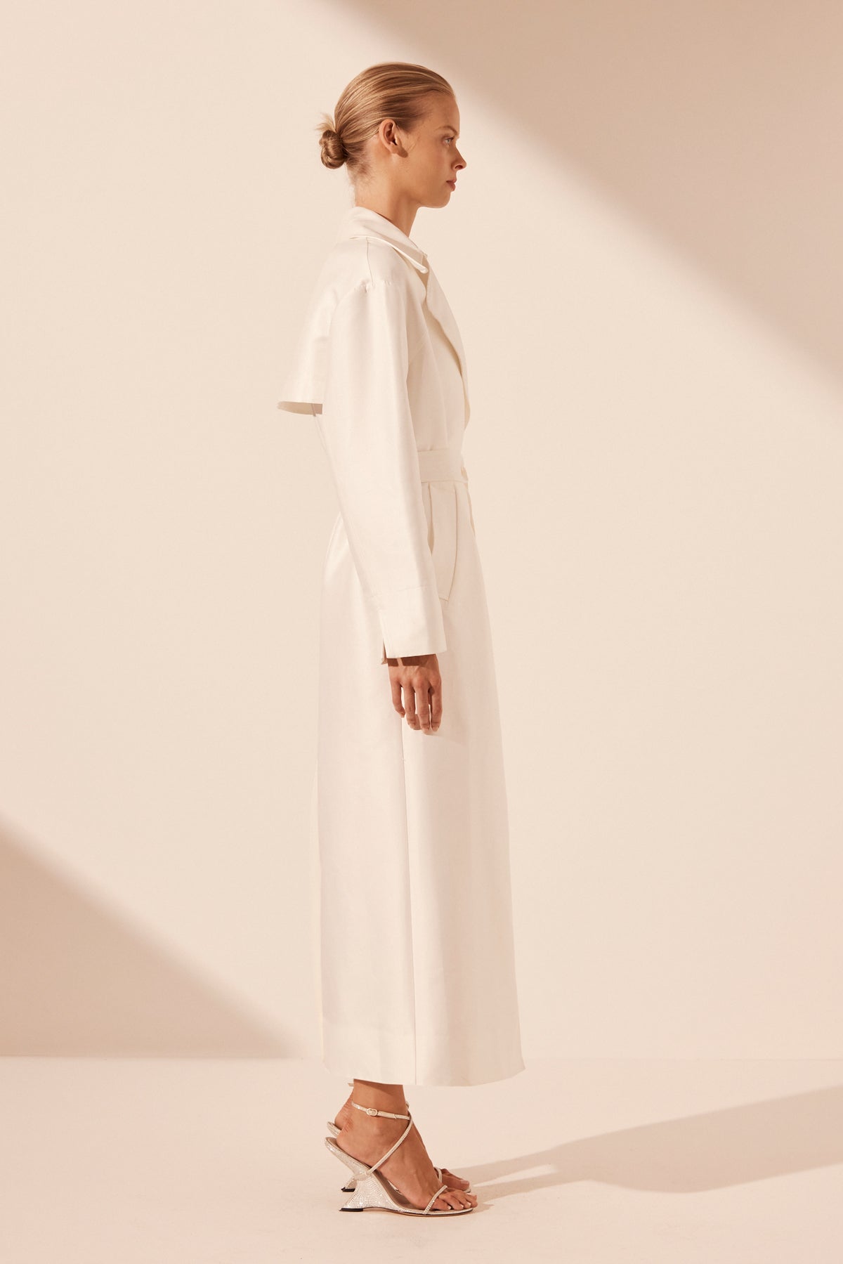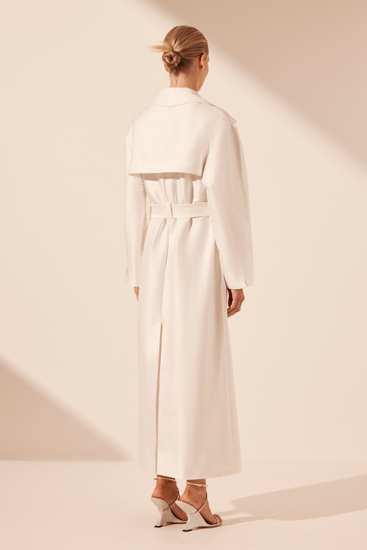 Classic trench coat in ivory in a luxurious cotton blend sateen.